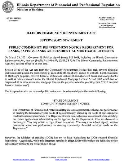 Illinois Department of Financial and Professional Regulation - Division of Banking